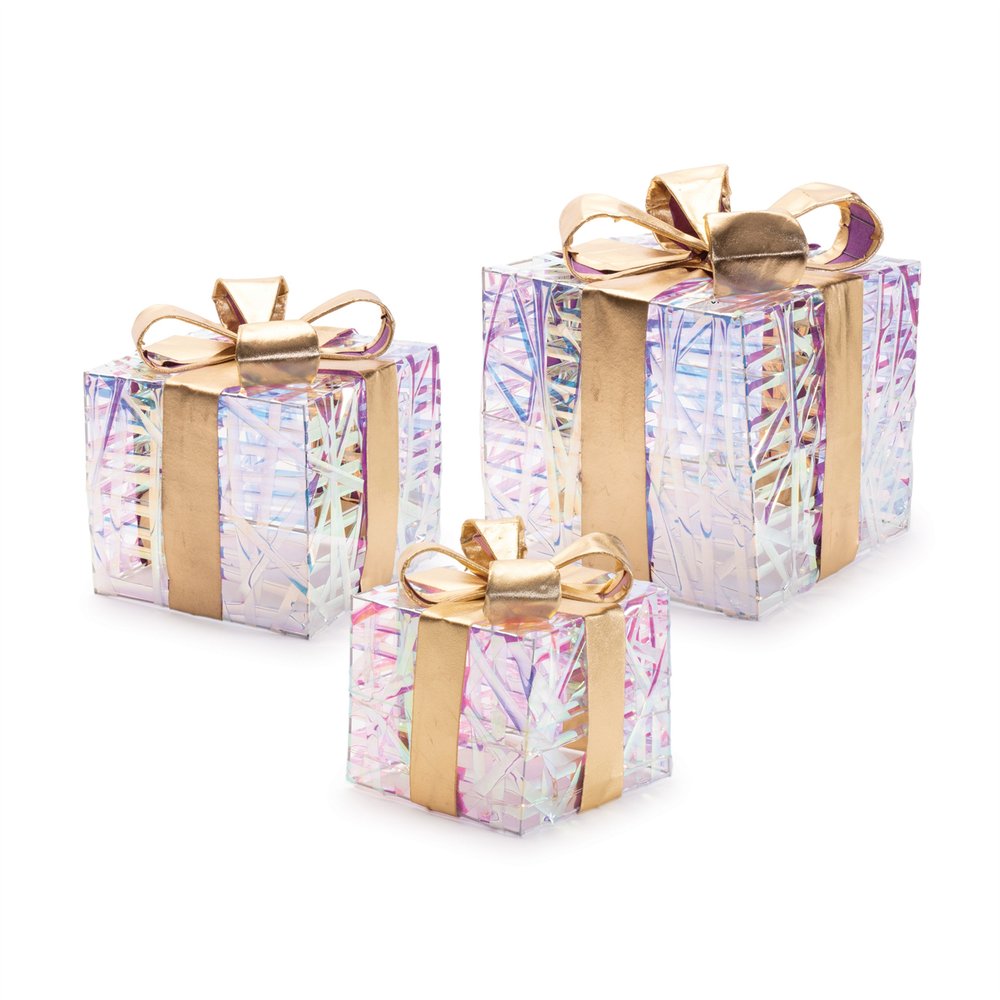 Set of Three Clear And Gold Decorative Boxes With LED