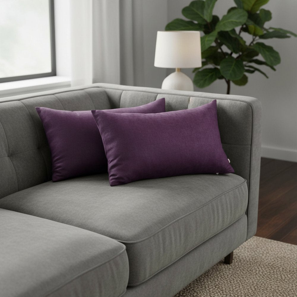 The set of two 12-inch x 20-inch purple fabric lumbar throw pillows is the perfect decorative accessory for your home.... Read more