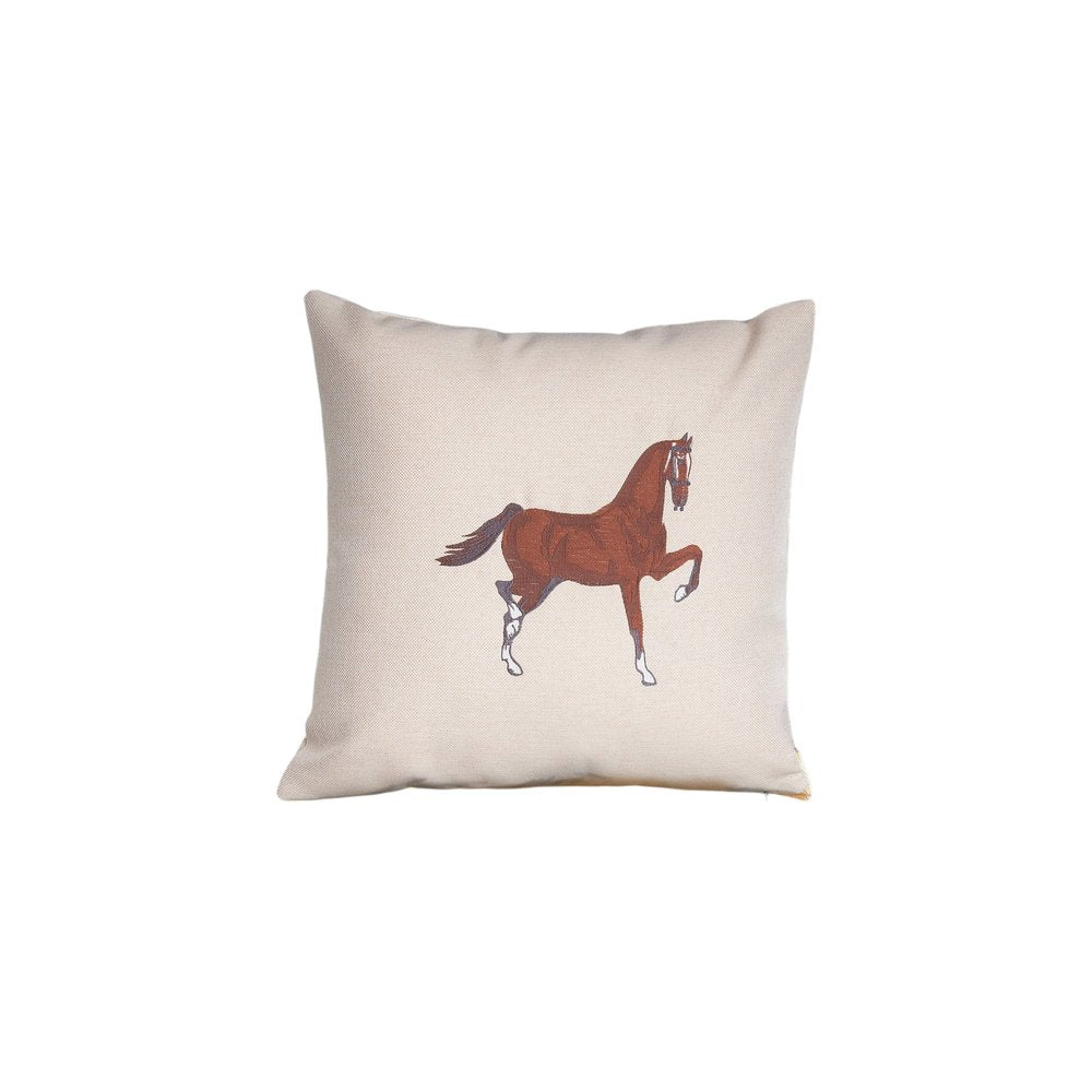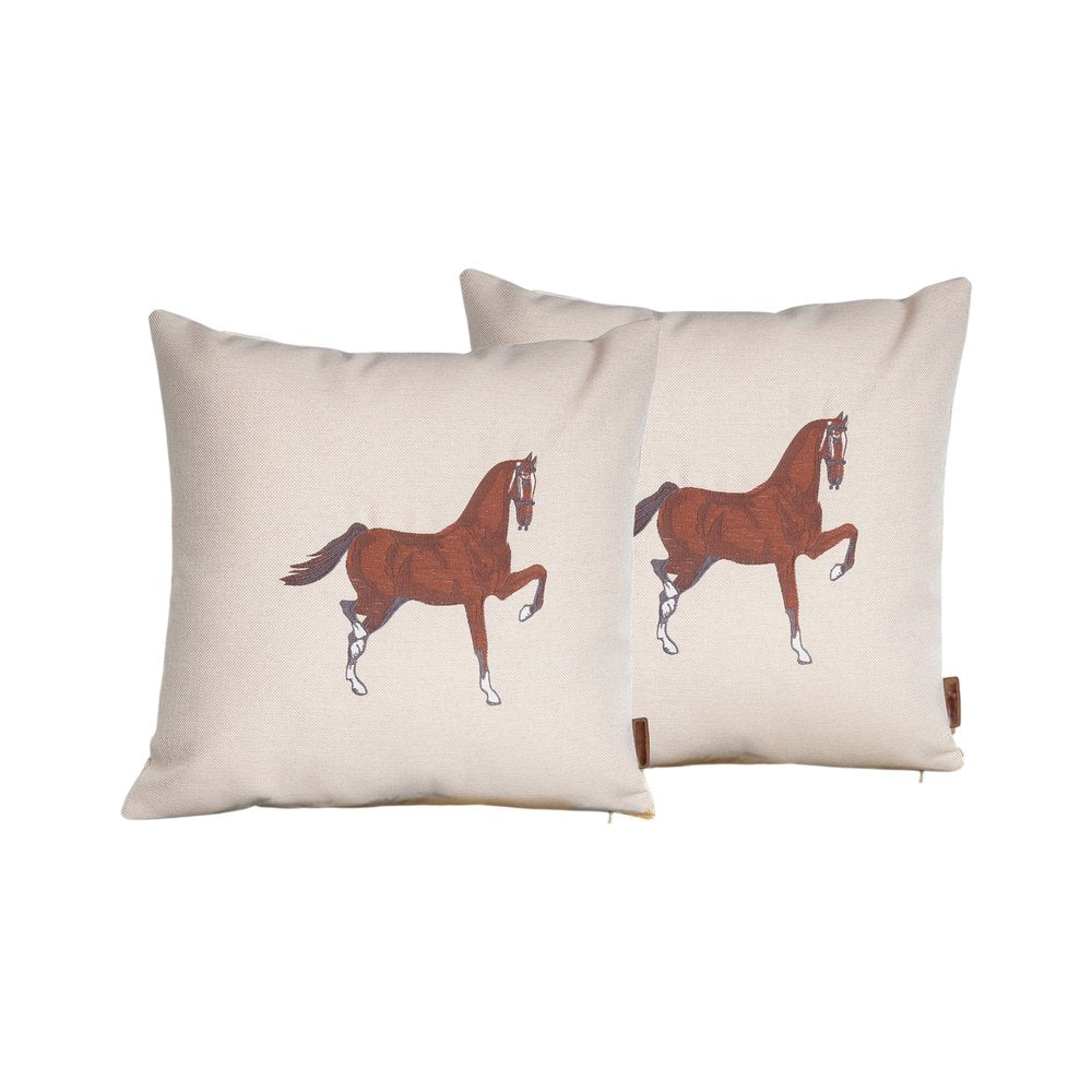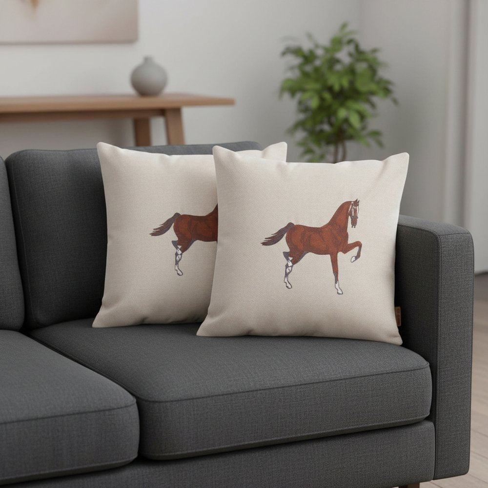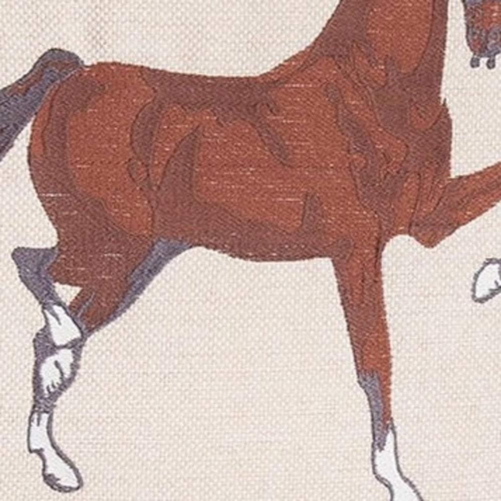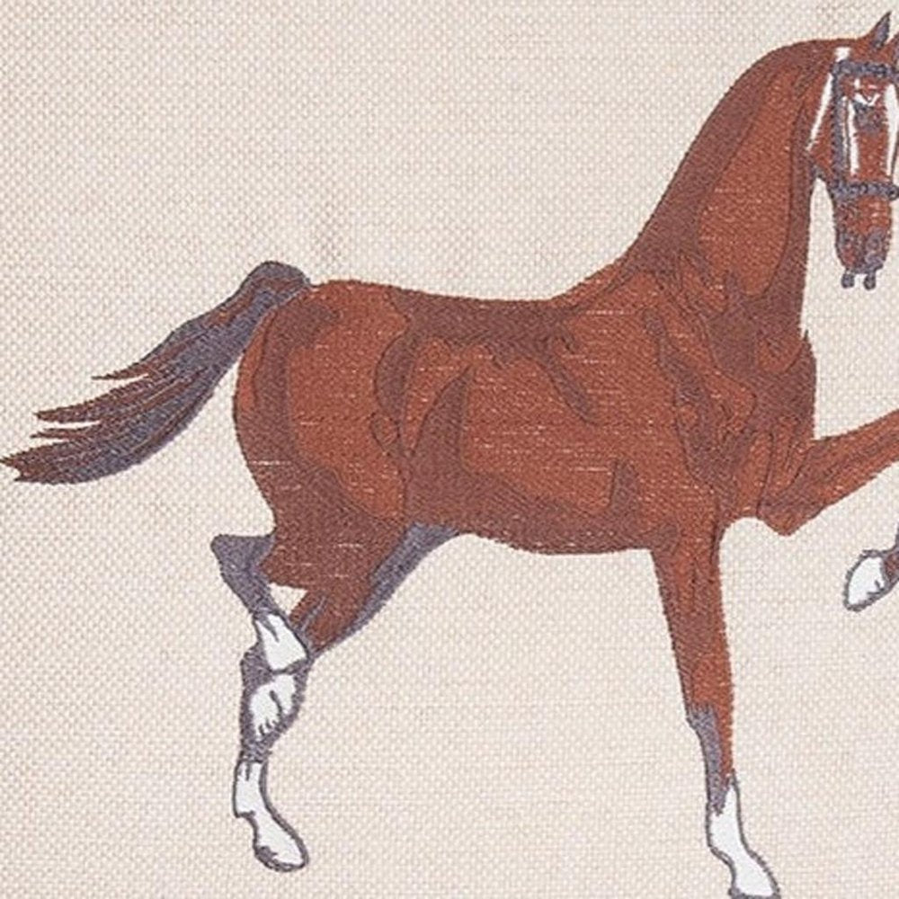 Set of Two 18" Beige And Brown Horse Throw Pillows with Embroidery