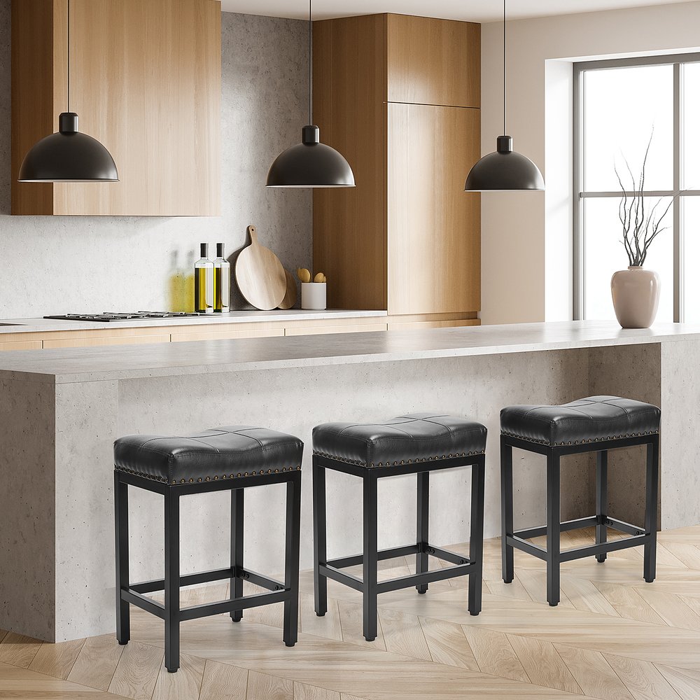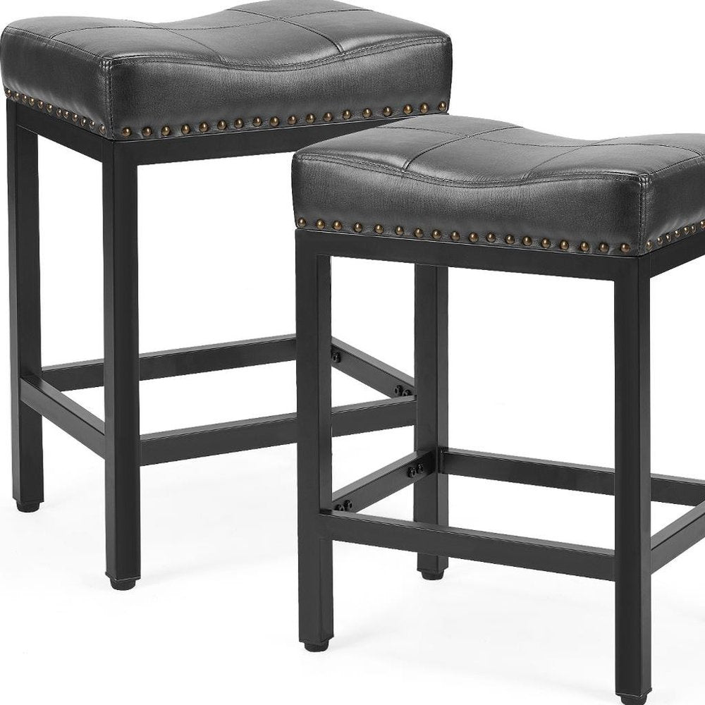 Set of Two 22" Black Heavy Duty Plastic Backless Bar Chairs