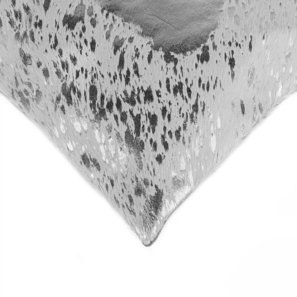 Set of Two 18" Gray and Silver Abstract Cowhide Throw Pillows with Glitter