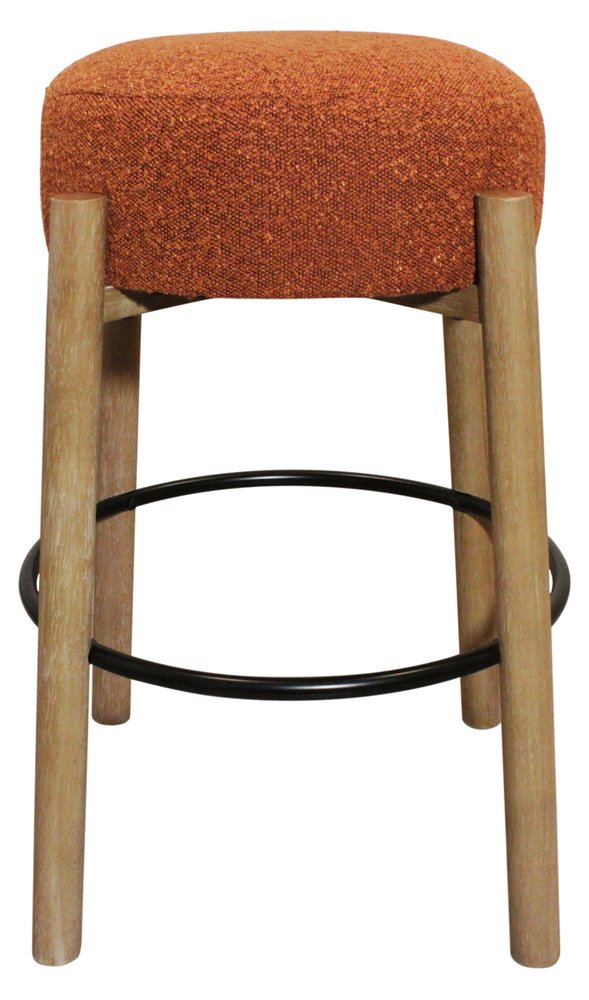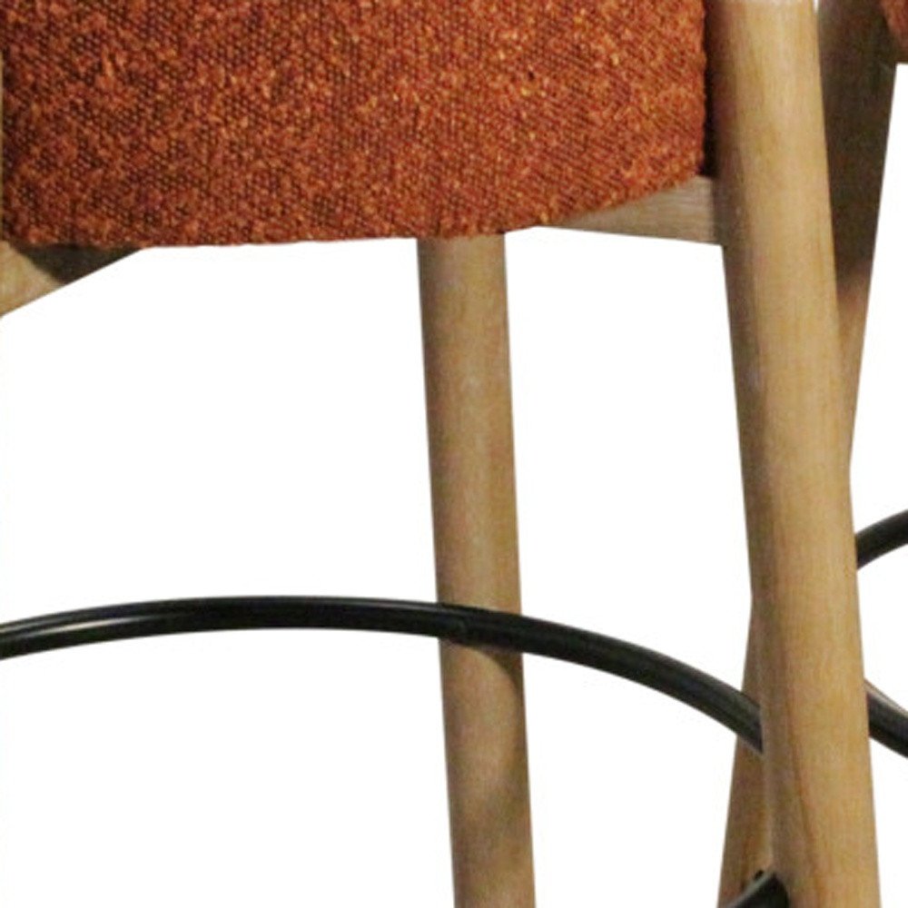 Set of Two Rust and Natural Fabric and Solid Wood Backless Bar Height Bar Chairs