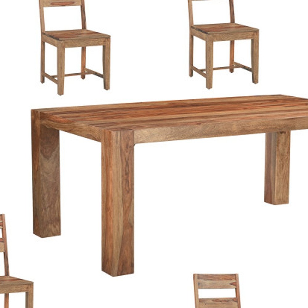 Seven Piece Brown Solid Wood Dining Set with Six Chairs