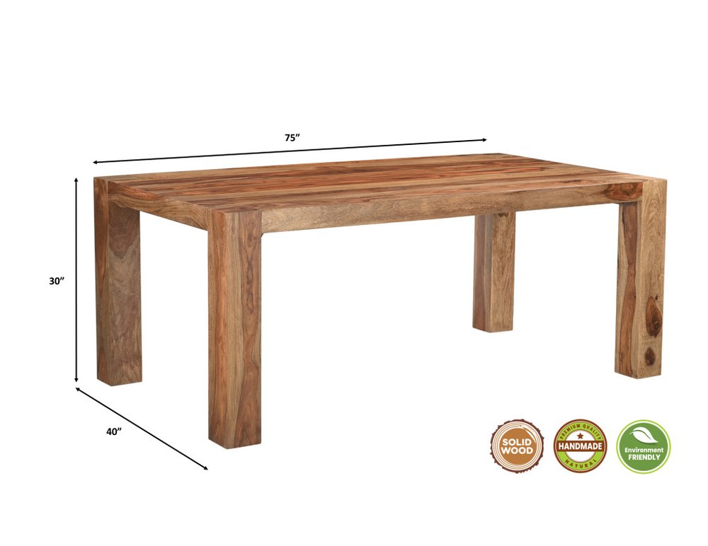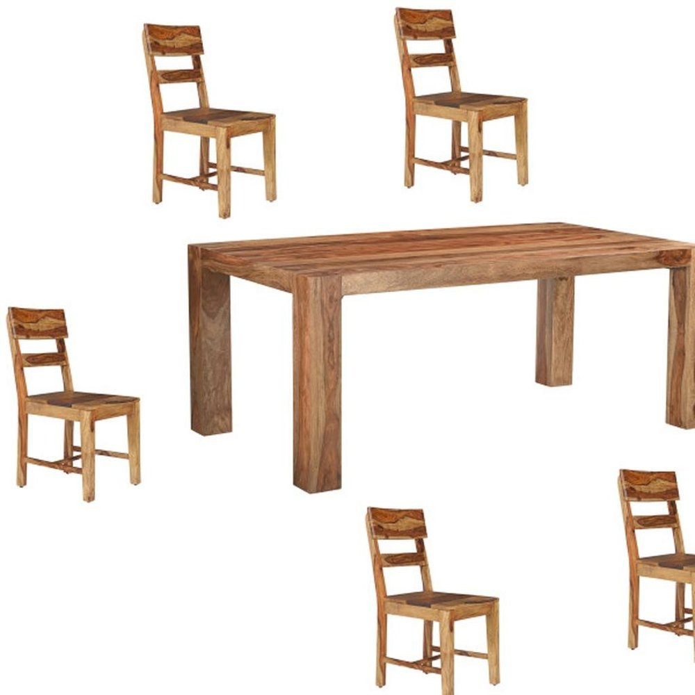 Seven Piece Brown Solid Wood Dining Set with Six Chairs and One Bench