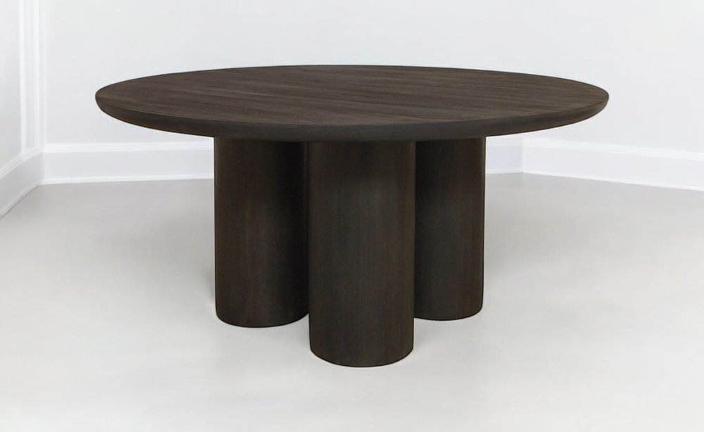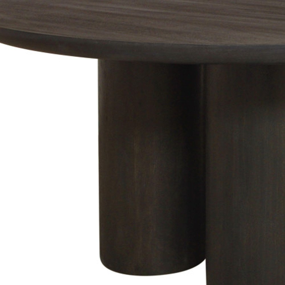 Seven Piece Dark Brown Round Solid Wood Dining Set with Six Chairs