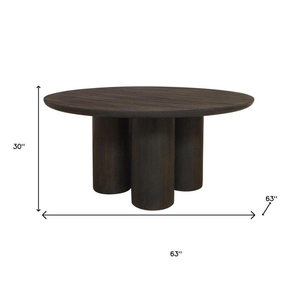 Seven Piece Dark Brown Round Solid Wood Dining Set with Six Chairs