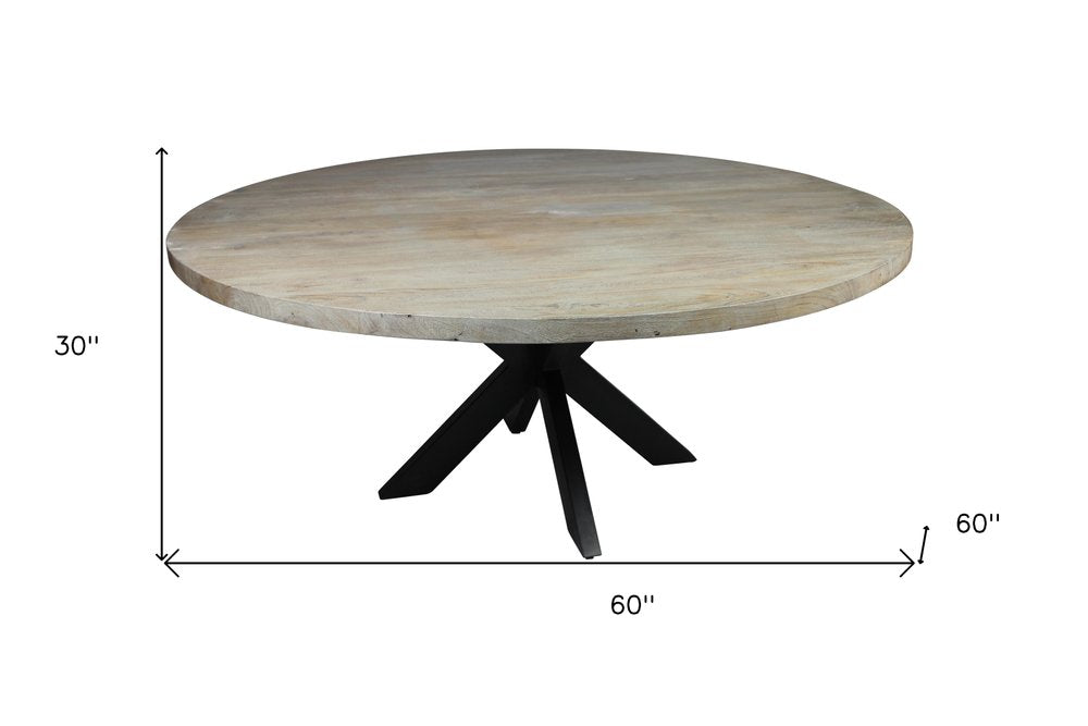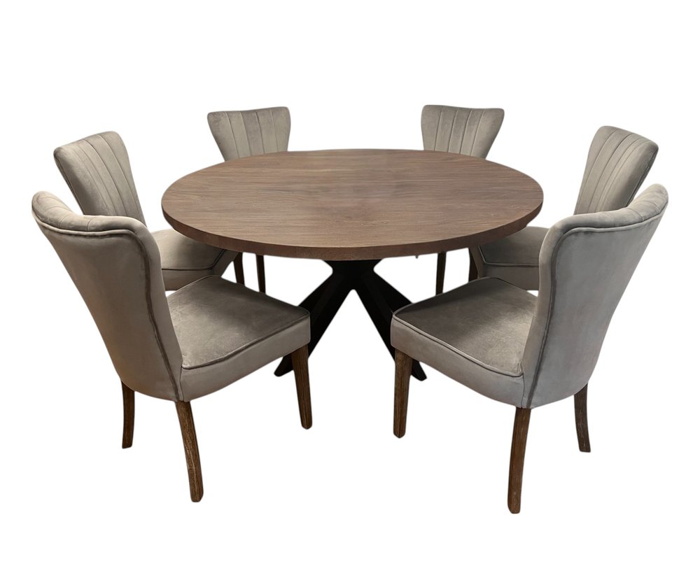 Seven Piece Gray and Black Round Solid Wood Dining Set with Six Chairs