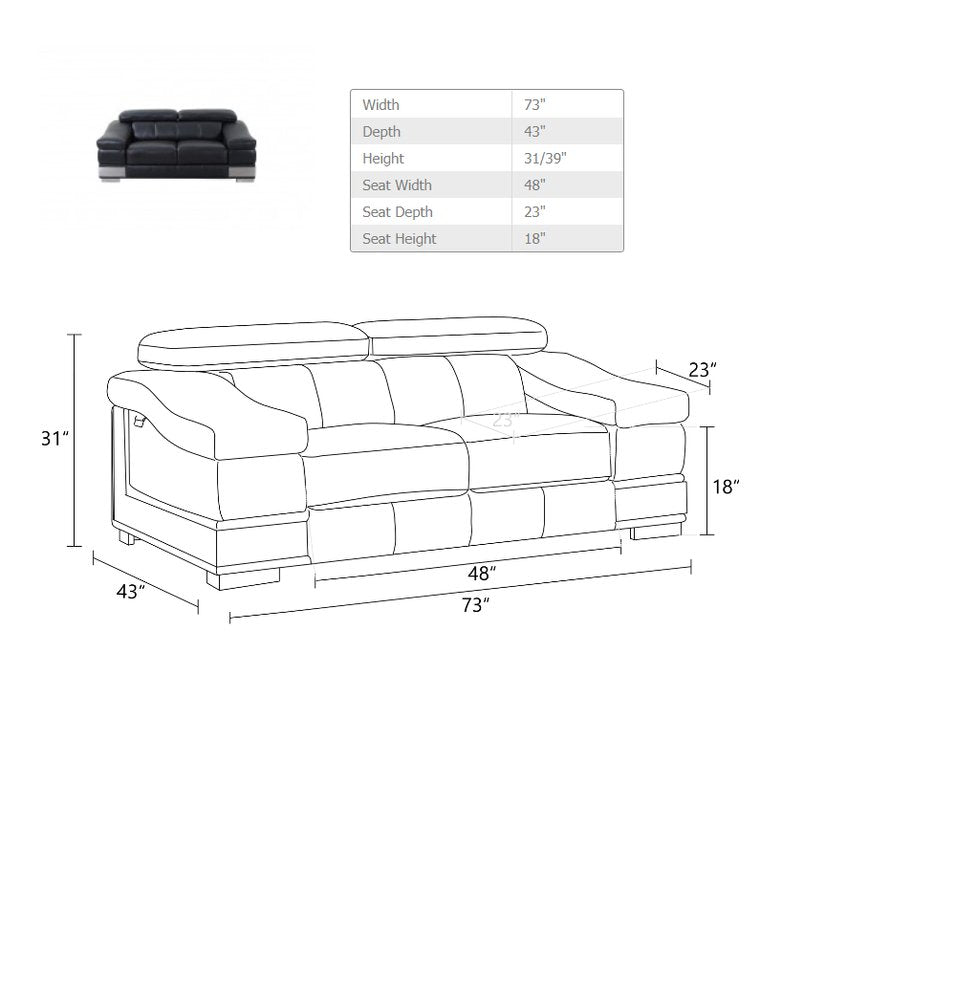Two Piece Indoor Black Italian Leather Five Person Seating Set