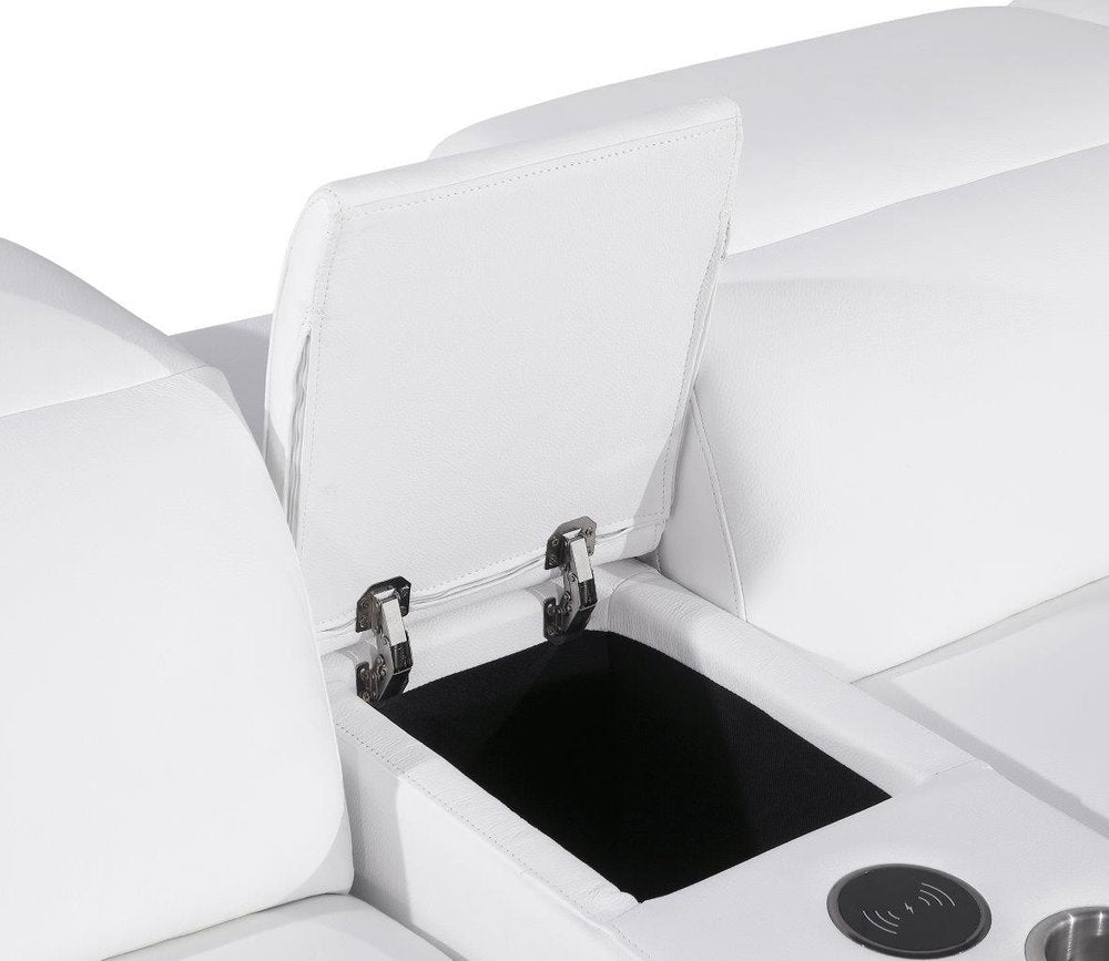 The white Italian leather 4 power reclining l shaped eight piece corner sectional with console is spacious design meticulously crafted... Read more