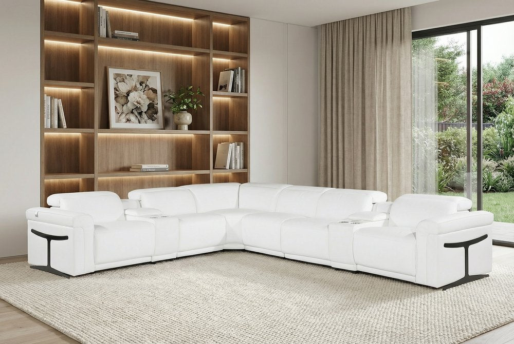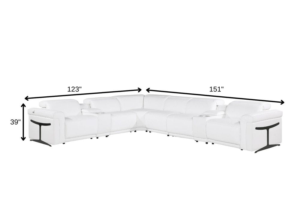 White Italian Leather Modular L Shaped Eight Piece Corner Sectional With Console