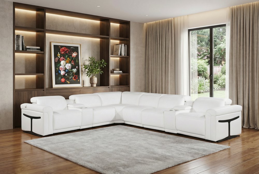 Made of the highest quality, supple leather, this white italian leather modular l shaped eight piece corner sectional with console... Read more