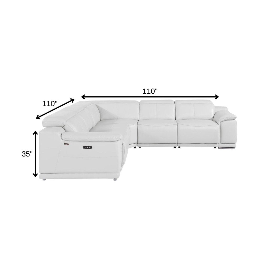 White Italian Leather Power Reclining L Shaped Five Piece Corner Sectional
