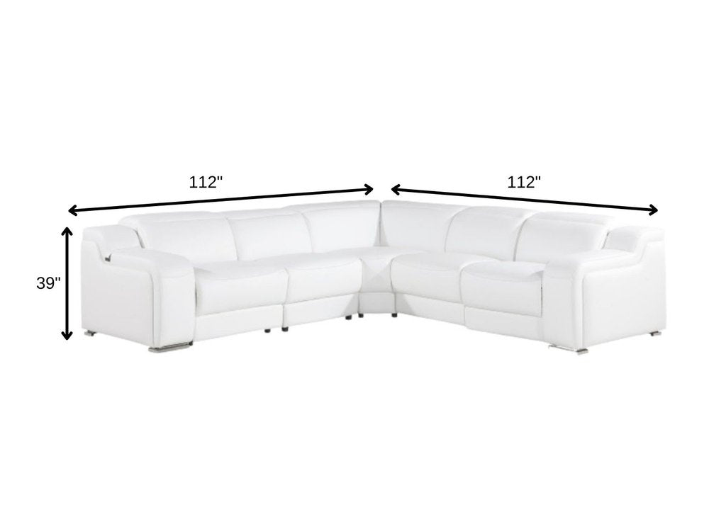 White Italian Leather Power Reclining L Shaped Five Piece Corner Sectional