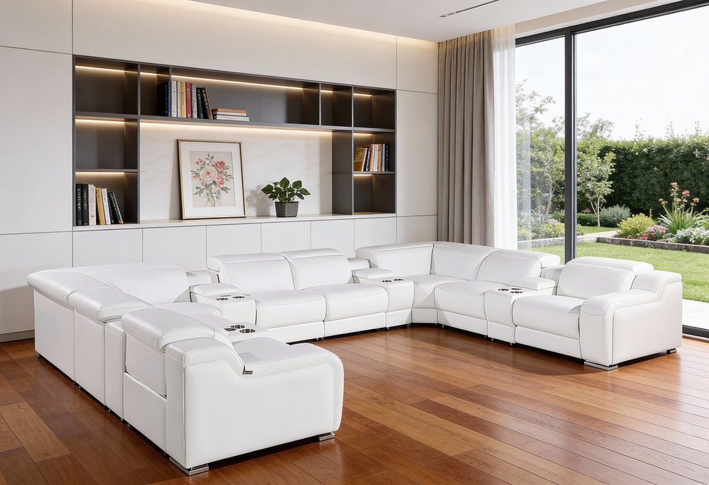 Take your relaxation to the next level with this super soft and comfortable white italian leather power reclining u shaped... Read more