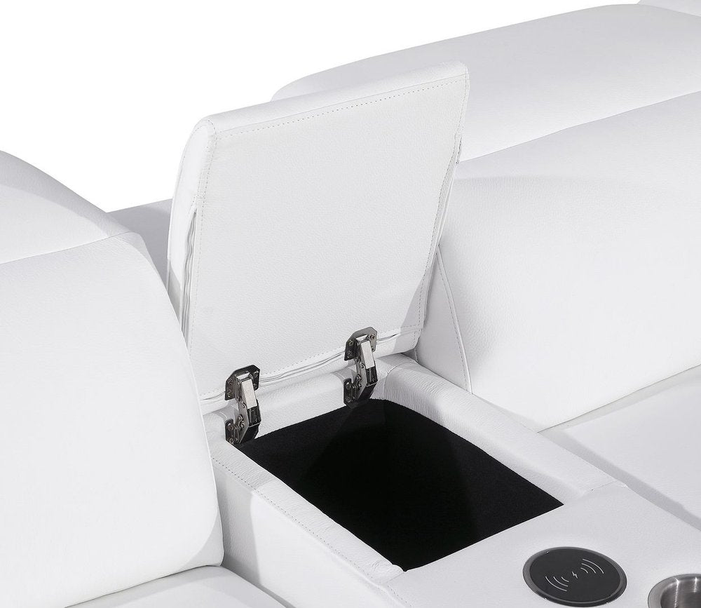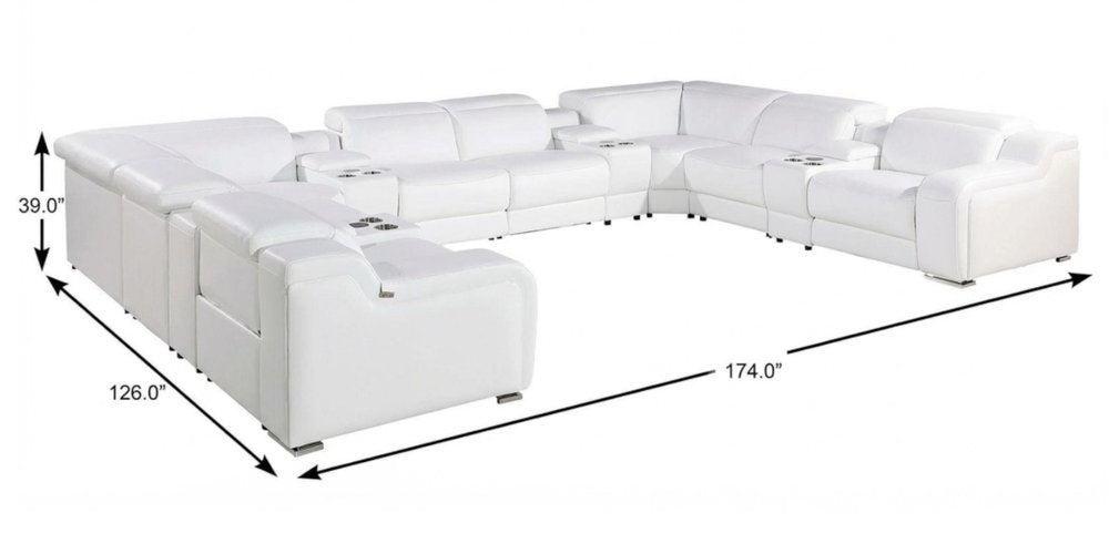 White Italian Leather Power Reclining U Shaped Twelve Piece Corner Sectional With Console