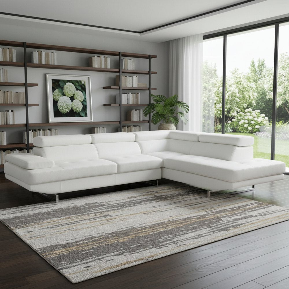 The white leather L shaped two piece corner sectional is spacious design meticulously crafted with extraordinary cushion comfort and ultimate...