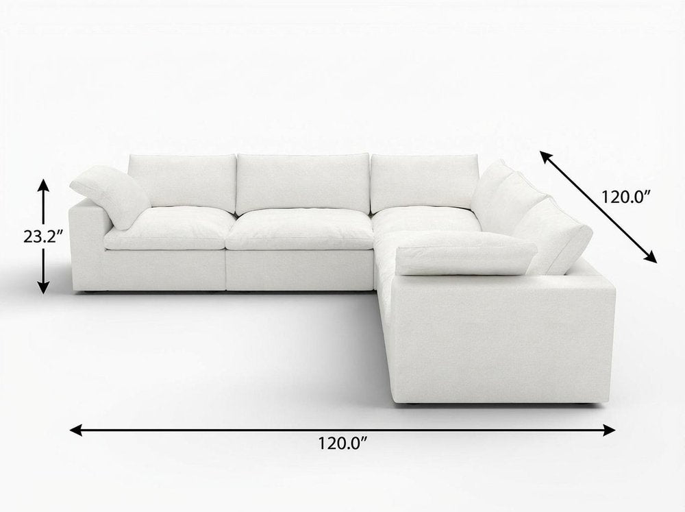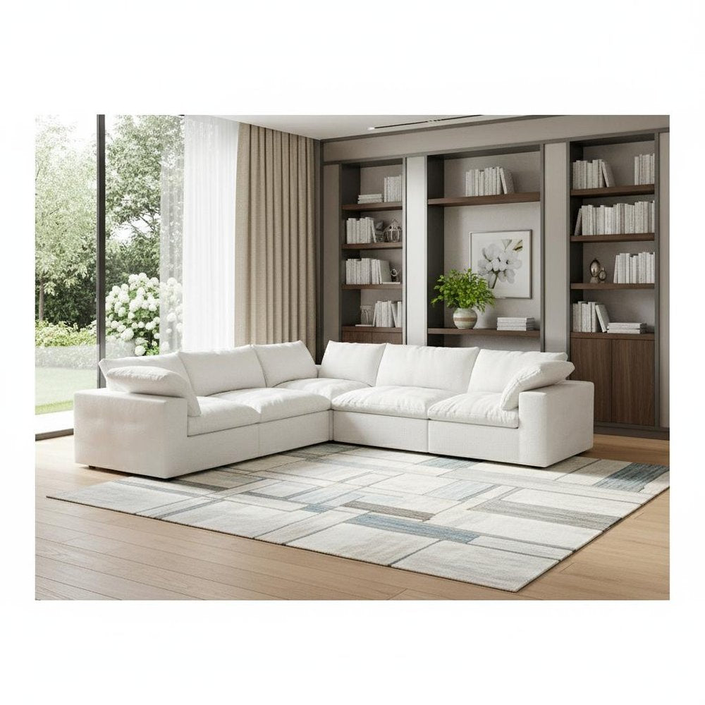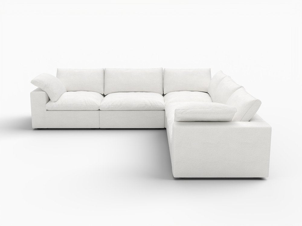 White Linen Blend Modular L Shaped Five Piece Corner Sectional