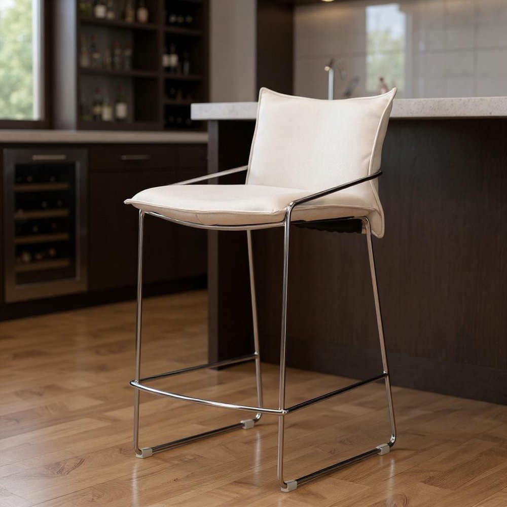 White Wood and Fabric Bar Chair